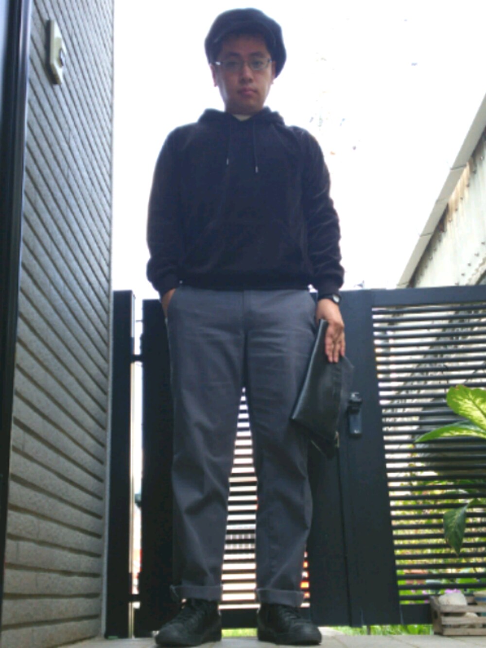 パーカーのベロア素材がなかなか活きてる。ベロア?ペロア?たぶんベロア。 まっくろだけど独特の光沢があるので地味にならない。