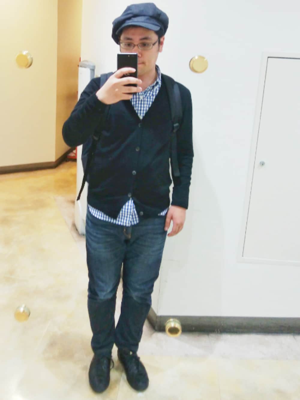 沖縄から青森に旅に出てたのだが、その中継地の大阪で撮影。 キャスケットは、いつも斜めに傾けてる。ギンガムチェックが色のアクセントになって、リュックの安定感。 けっこう気に入ってる