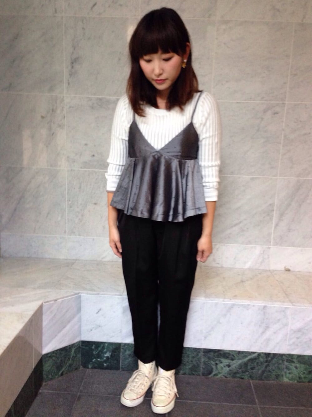 このストライプニットは大人っぽく着れる♡ そして腕の太さ半端ない😂 痩せなければ〜😂