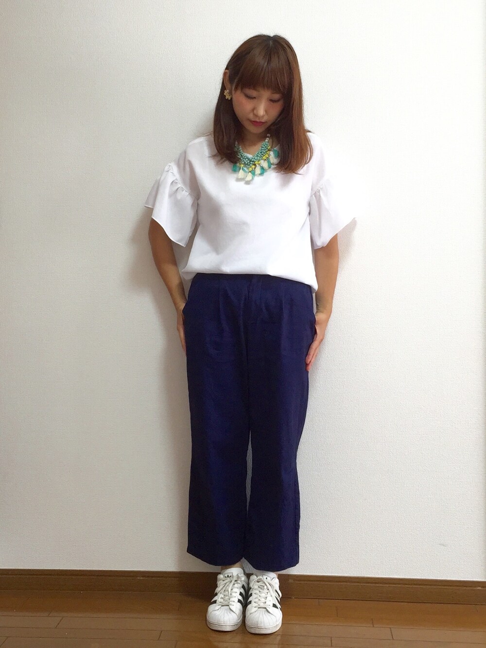 GUDHOLICAnother Edition¥3,190Another Edition¥4,180この画像から似たアイテムを検索できます4397お気に入り (1)75ami-5さんへのコメントNO COMMENTコメントはスマートフォン用アプリからご利用できます着用アイテムGUGUその他パンツ (ブルー系)その他パンツ探すZOZOTOWNで探すDHOLICDHOLICTシャツ/カットソー (ホワイト系)Tシャツ/カットソー探すZOZOTOWNで探す¥3,190Another EditionAnother Editionネックレス (ブルー系)ネックレスサイズ:フリー探すZOZOTOWNで探す¥4,180Another EditionAnother Editionピアス(両耳用) (ゴールド系)ピアス(両耳用)サイズ:フリー着用コーデ:5件探すZOZOTOWNで探すami-5のその他パンツを使ったコーディネートコメント5件を表示2015.6.22着用ブランドGUDHOLICAnother Editionタグ#袖フリル#ホワイト#ワイドパンツ#ネイビーパンツ#フリンジ#おおぶりネックレス#adidas#スーパースター#WEARママ部モデル情報女性・160cm・32歳ミディアムヘアー似ているアイテムGU × その他パンツDHOLIC × Tシャツ/カットソーAnother Edition × ネックレスAnother Edition × ピアス(両耳用)ami-5@aaaaami5 / 160cm / WOMEN / ミディアムヘアー0コーディネート0フォロワー注目のコーディネートアプリでもっと見るもっと見る