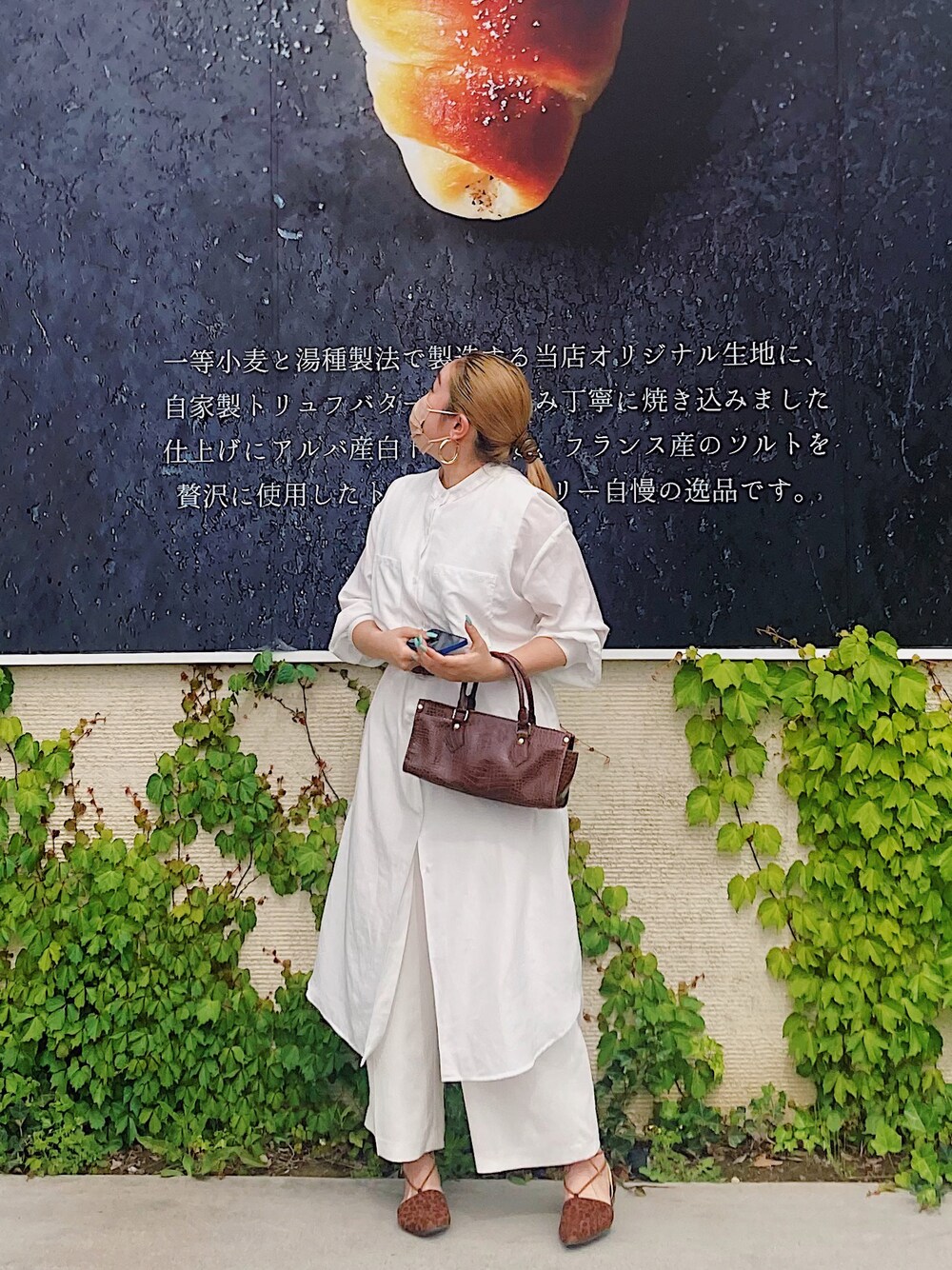 今日のカラーは『ホワイト×ブラウン』🤍🤎 白と茶色縛りのコーデ!服はホワイト、小物は全てブラウンにすることによって統一感がすごく出ます!腕で隠れてしまってますが、ウエストマークしてるベルトもブラウンです✨ ⭐️ポイント⭐️ アクセサリーはゴールドで! 中のタンクトップはブラウンでも可愛い! バッグと同じような濃いブラウンのマスクの方が統一感がもっと出るかもしれない! 今日も雨ですが元気よくいってらっしゃい‼️