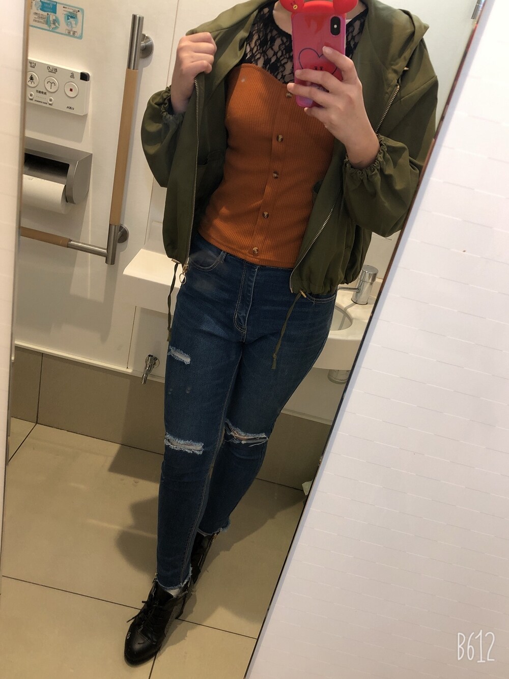 着回しコーデ3日目 ミリタリージャケット3日目 休日だからお気に入りのダメージジーンズと合わせた♪明日はデート♪