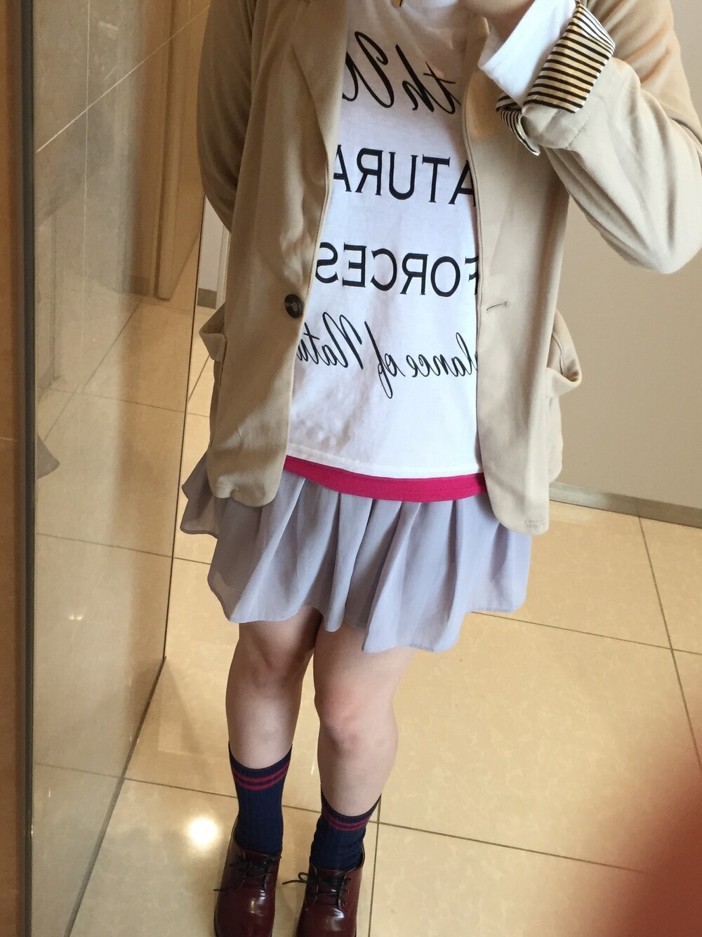 ジャケットにはセーターやブラウスと言われるけど何気Tシャツもあり?って感じ TシャツもTシャツで色とかを合わせると意外とジャケットに合わせやすいかもw