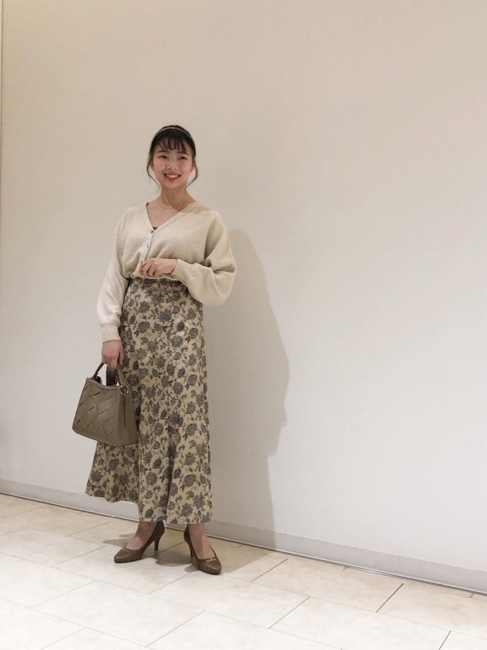 みなさんこんにちは!☺︎ ワントーンで可愛いコーディネートです♥︎ スカートの形が良くて一目惚れしました✌︎ カーデのゆるっと感も 女性らしくて可愛い🤎
