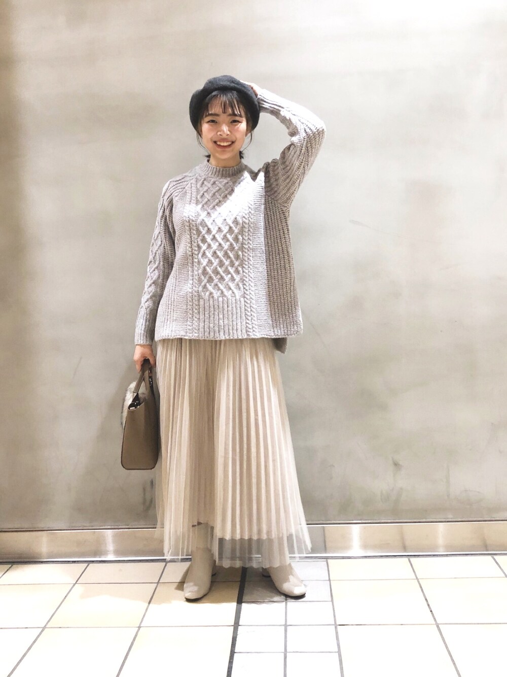 こんにちは! すっかり冬ですね❄️ 冬は、ニットやコートなど生地感が厚くなりますが、そこにチュールを合わせることで軽さを出すことができます⛄️♥︎ ベレー帽で頭まで暖かいですよ!! インフルエンザも流行る時期ですので、、皆さんもお体には気をつけて〜🥺