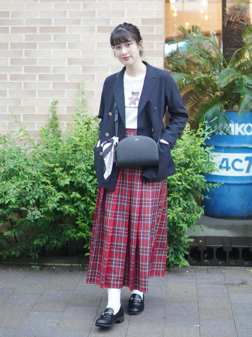 紺ブレ×赤チェックスカートのトラッドスタイル🇬🇧 小物はショルダーバッグとローファーがマスト🌟 ---------- ぜひInstagramも見てくださいね✧ Instagram▷▷▷annahayashi0726 ----------- お問い合わせはInstagramDMまで✉