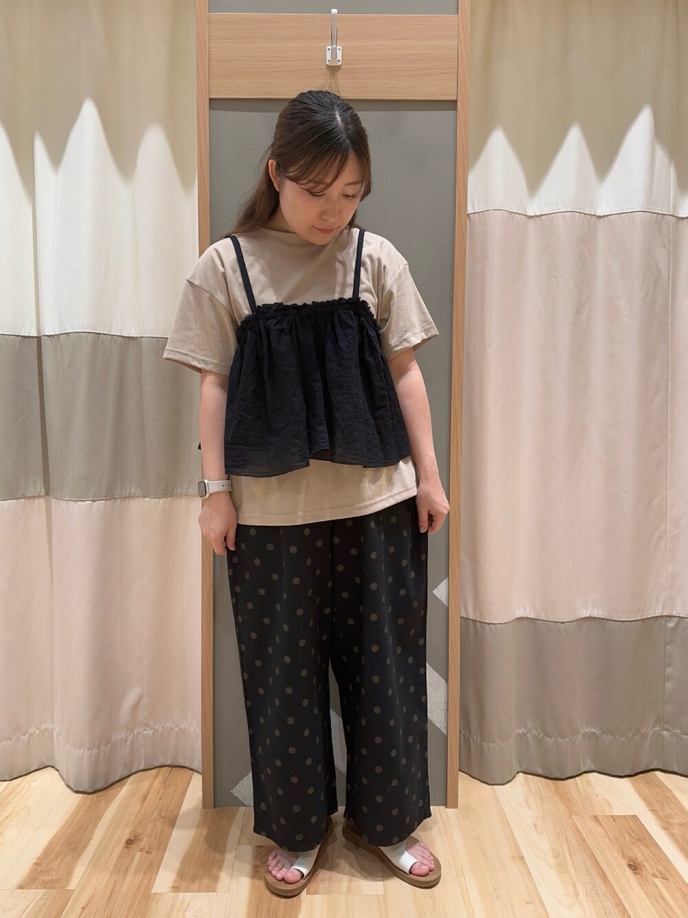 ビスチェセットのTシャツはカラバリも豊富で色違いで着回ししても🙆🏻♀️ パンツはサラッとした素材で夏も涼しく、初秋まで使えるカラーです!裏地が無いので夏は快適です◎