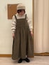ジャンスカは前後着着用可能で、印象がガラッと変わります!前をVネックにして着るとリボンがアクセントになり可愛いです🎀 今回、ベストを前リボンにしたので前後を変えて着てみました◎ 薄手の生地ですが、透ける心配なくお使いいただけます!また、ベストもウール混で冬まで暖かくオシャレを楽しめます♩