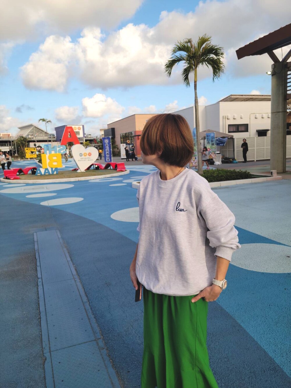▼luana okinawa luaロゴ刺繍スウェット Lサイズ着用👩