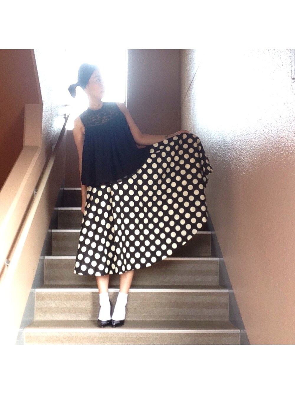 大人な場所に出かけたので 昨日はちょいとお出掛けコーデ☆ このドットのスカート、 何年か前に古着屋で見つけて一目惚れ♡ だから古着屋さんが大好き。 あのワクワク感ったらない♡♡
