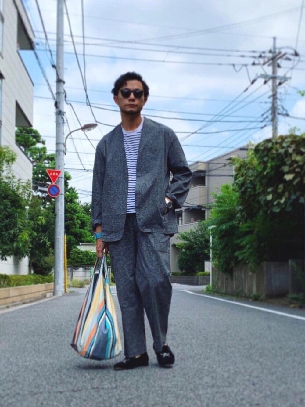 Sigのジャケットセットアップコーデ。 ジャケットはノーカラー、パンツはボリュームがあって小洒落た雰囲気になるので気に入っています。 【きれい目ポイント】 ▪️セットアップ ▪️ベロアのスリッポン 【スタイルアップポイント】 ▪️大きめのパンツを高い位置で履いて腰を上に見せる ▪️クッションが出ない靴を選んでパンツのシルエットをきれいに見せる