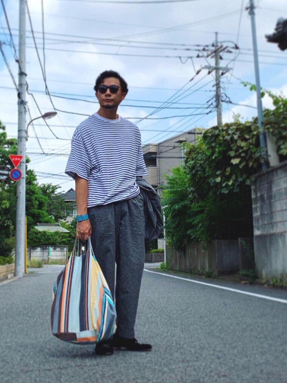 上下ともかなりのビッグシルエットで今風ですが、きれい目な要素を入れつつ着こなしをいくつか工夫すると、ストリートっぽくならず体型が整って見えます。 最近のお気に入りです! 【きれい目ポイント】 ▪️スラックス風のパンツ ▪️モノトーン、ジャケット携帯 ▪️ベロアのスリッポン 【スタイルアップポイント】 ▪️上下ルーズシルエット、トップスは着丈を短めに調整 ▪️パンツを高い位置で履いてクッションが出ない靴を選ぶ