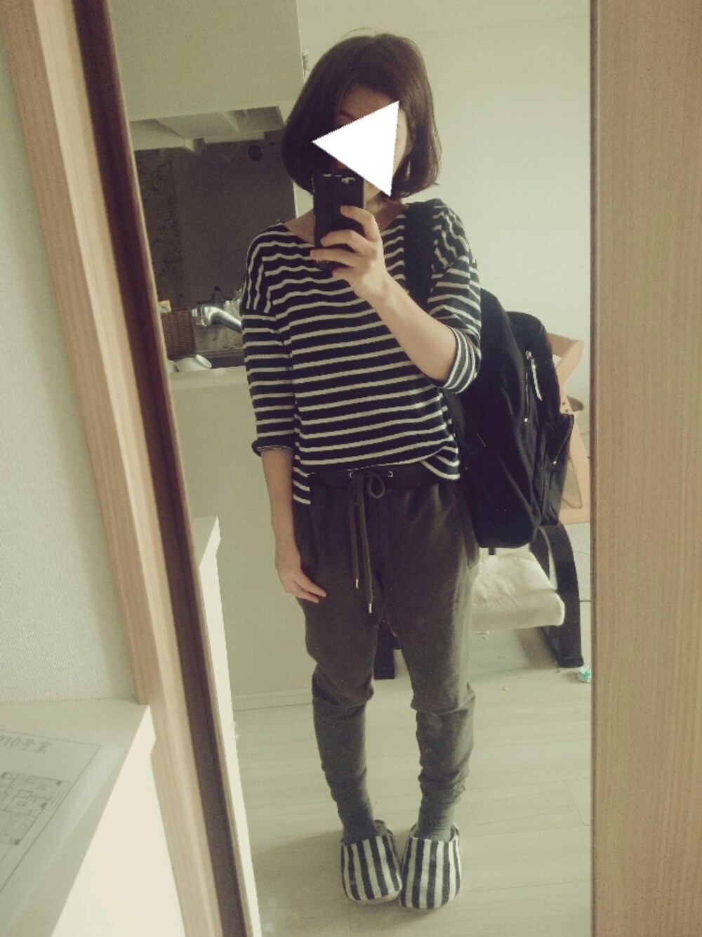 お掃除コーデ。 とあるおうちの大片付けのお手伝い。 動きやすいようにスエットパンツ大活躍。 これにデニムのエプロンとマスクで。 短めトップスがお気に入り。