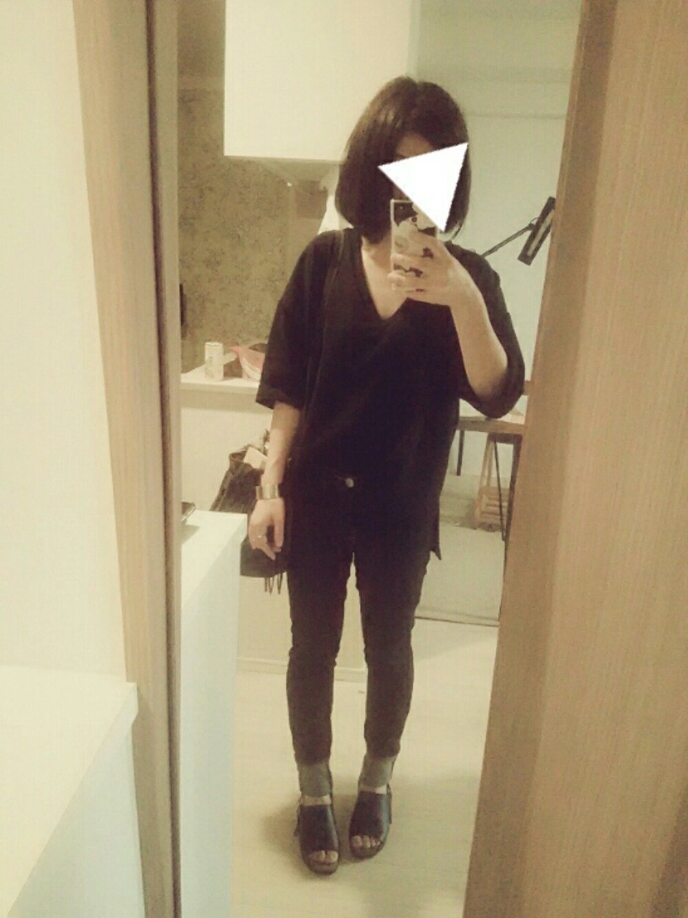 雨だったので5部袖のカットソーを。 サボサンダルはアーバンリサーチで定価で4800円の破格で発見! 即買い上げでした。 シンプルに着て、アクセサリーで盛りました。 指輪を何本も重ね付けして、バングルも。 バングルはしまむらの580円。プチプラ万歳‼