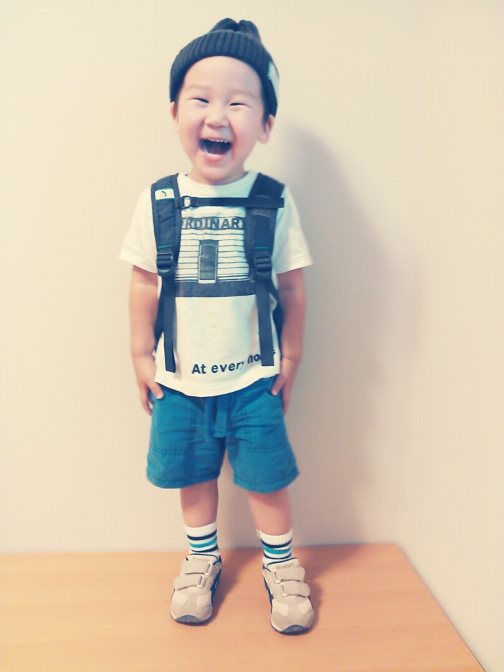 Tシャツ SHIPS パンツ オールドネイビー くつ もらいもの 満面の笑み! このままお出掛け!