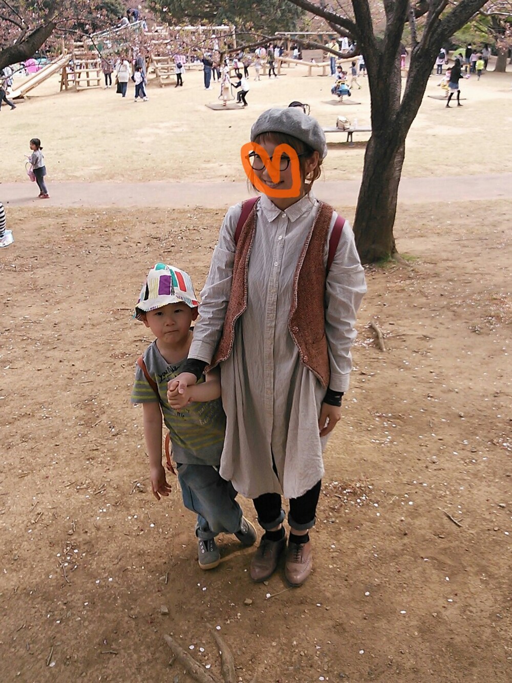 シャツワンピース  ナイスクラップ ベスト       古着 スキニー      gu くつ        あしながおじさん ピクニック日和! 幼稚園の友達に偶然会って長男ハッスルの巻。