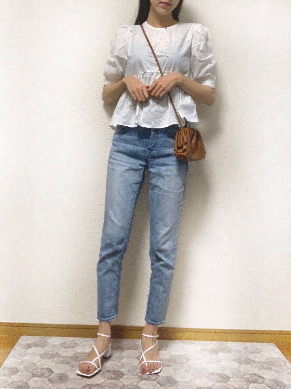 白×デニムは王道で可愛い🎈 いいね、お気に入り ありがとうございます👒