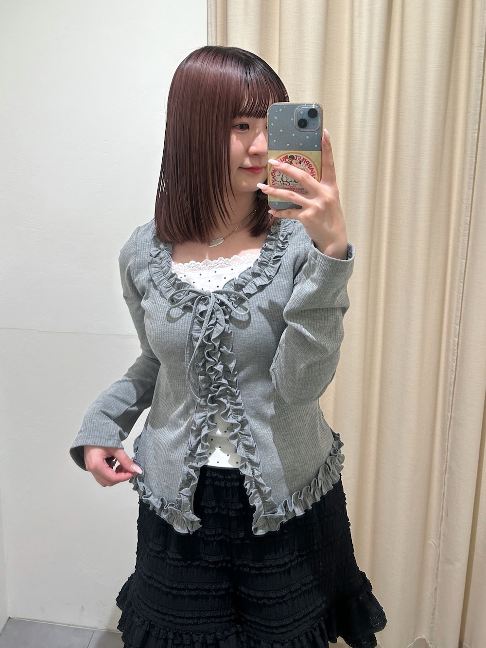 Ishimoto Airi (wcloset 天王寺MIO店)のTシャツ/カットソー「ドットレイヤードフリルカーディガン」を使ったコーディネート