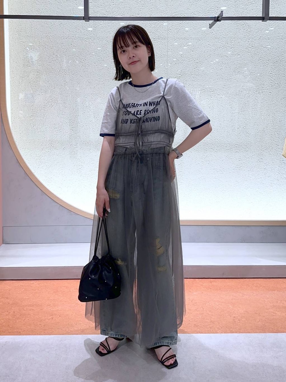 👕各アイテムのおすすめポイント 🏷️tops*アソートリンガーTSS* コンパクトなデザインで、ビスチェなどとも重ね着しやすいです! 袖の配色のデザインがポイントになって、シンプル過ぎないコーディネートになってお洒落に見えます◎ 🏷️bottoms*CONE/ワイドストレートパンツ* 今年らしい茶加工のデザインがポイントになります! ハイウエストなので脚長効果もあります◎ 🏷️one-piece*2WAYチュールキャミワンピース* ウエストに切り替えのデザインになるので、広がりすぎないシルエットでスタイル良く見えます◎ 普段のコーディネートにプラスするだけでオシャレ感が出て便利なアイテムです! 《Instagramもやってます!!》