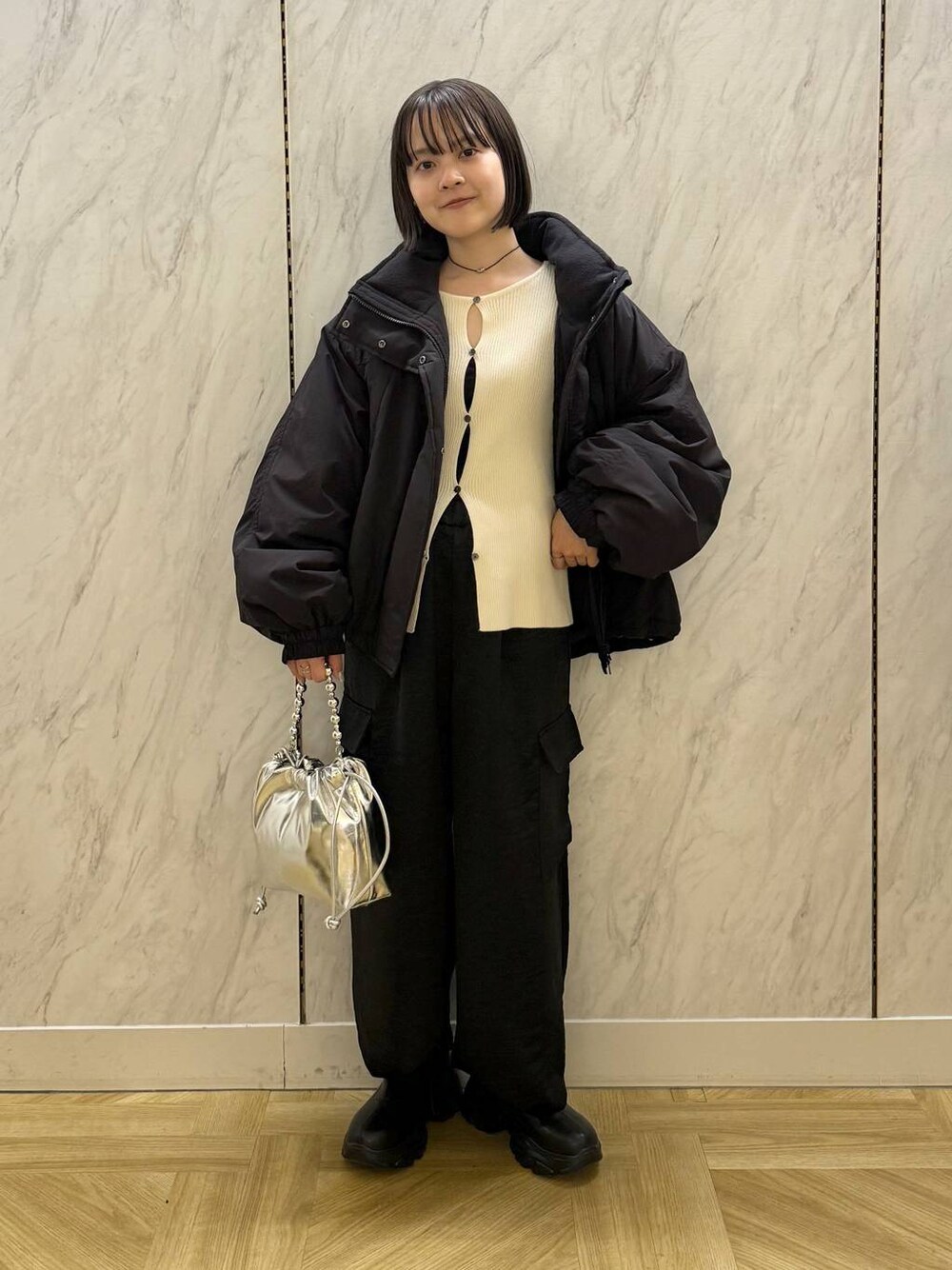 ▶︎アウター エアサーマルという軽量で保温性の高い中綿を使用したアウターです! シンプルなデザインなので、どんなコーデにも合います◎ スタンドの裏地がボアになっているので、マフラーなしでも暖かいです! ▶︎トップス ウエストの位置までボタンを開けて着ると、よりスタイルアップして着れます◎ 前後2WAYで着用可能です! ▶︎パンツ カーゴパンツですが、サテン素材なのでカジュアルすぎないコーディネートができます! 落ち感のある素材なのでシルエットが綺麗です✨