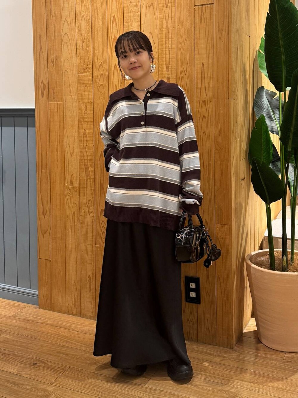 151cm/骨格ウェーブ ▶︎トップス ブルーとブラウンのカラーが目を引くラガーシャツ👔 大きめな襟のデザインもポイントです! ▶︎スカート 私も2色リアルバイしたアイテム! ウエストゴムで楽に穿けて、セミフレアのシルエットですっきりしているので、トップスもなんでも合わせやすいです◎ Instagram→