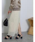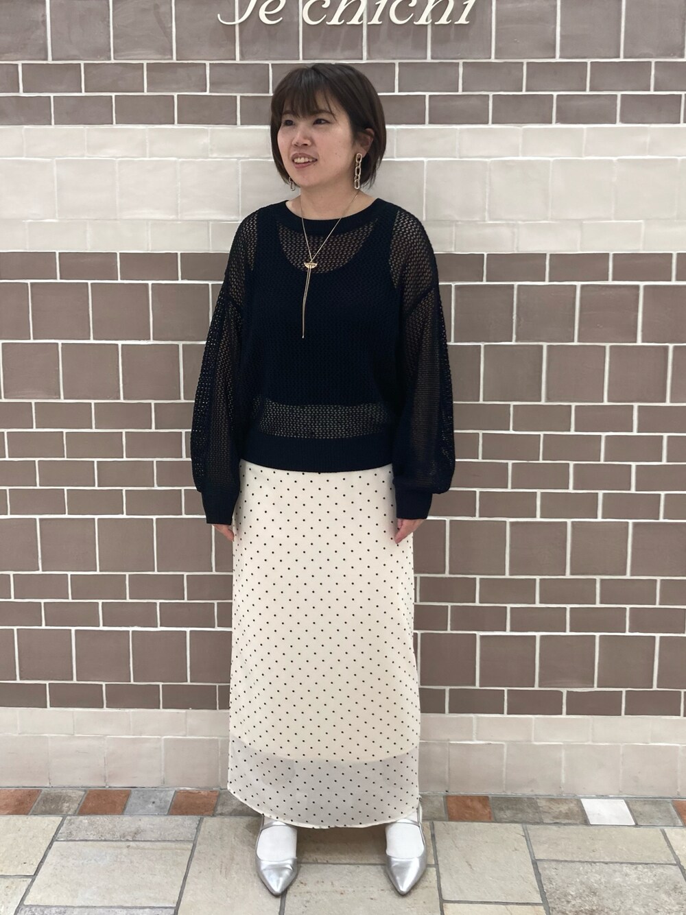ご覧いただきありがとうございます😊 出勤コーデ♪♪ ドット柄のスカートはIラインでシルエットが綺麗です。 ヒップラインを拾いにくいのでタイトスカートが苦手な方でも挑戦しやすいですよ👍