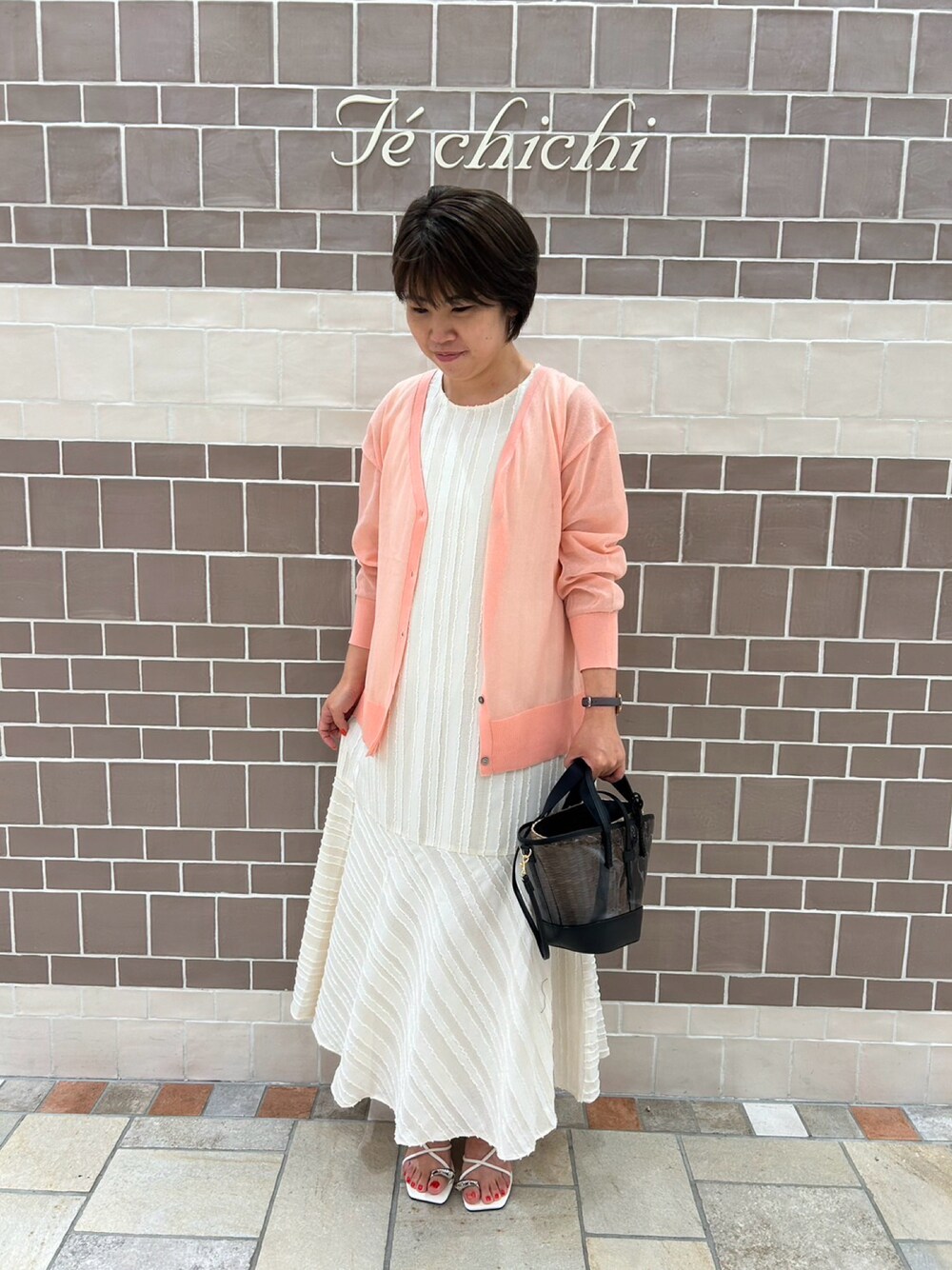 ご覧頂きありがとうございます♪♪♪ ワンピースは何よりシルエットが綺麗で、体型カバーできます✨ 裾がペプラムになっていて可愛いですよ😍 二の腕がきになる方はシアーのカーディガンを合わせるのがオススメ♪ カーディガンはシアーなので冷房や紫外線対策としてもお使い頂けます♪