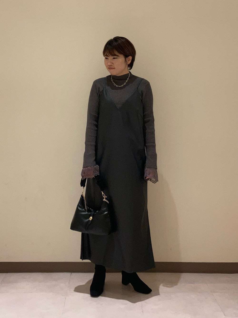 あいか🧸のワンピース「フェイクレザーキャミワンピース」を使ったコーディネート