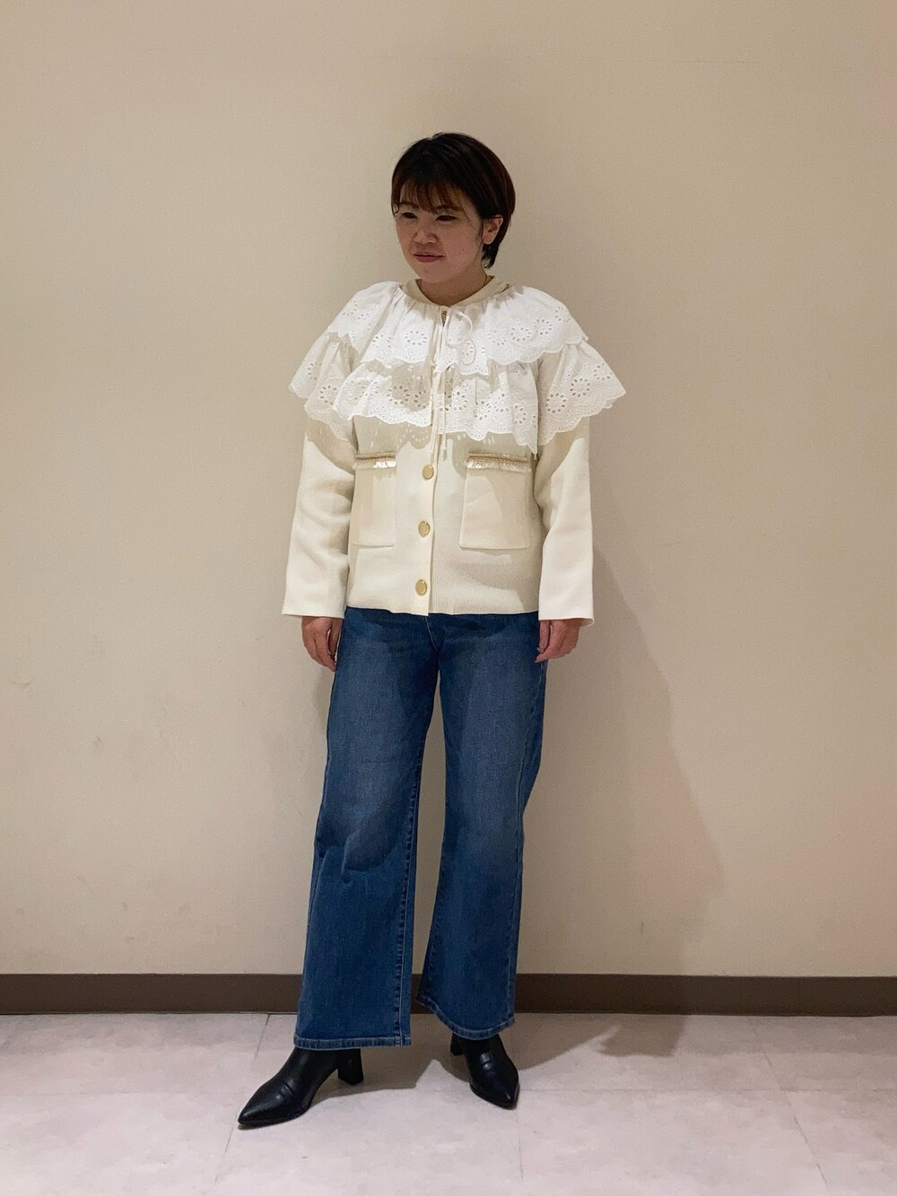 ご覧いただきありがとうございます😊 フリンジとゴールドのチェーンがポイントのカーディガンとレースのボレロを重ね着♪ デニムでバランスをとり大人の女性でも着れるスタイリングにしました✨ 本日よりインスタフォローで5%オフです♪