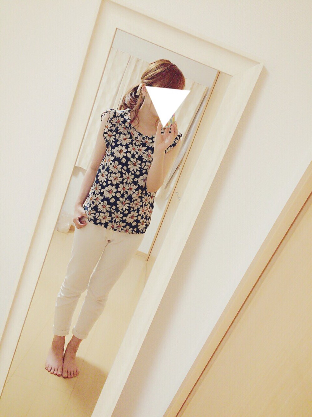 _ 派手派手なトップス♡ ホワイトパンツはしまむら。