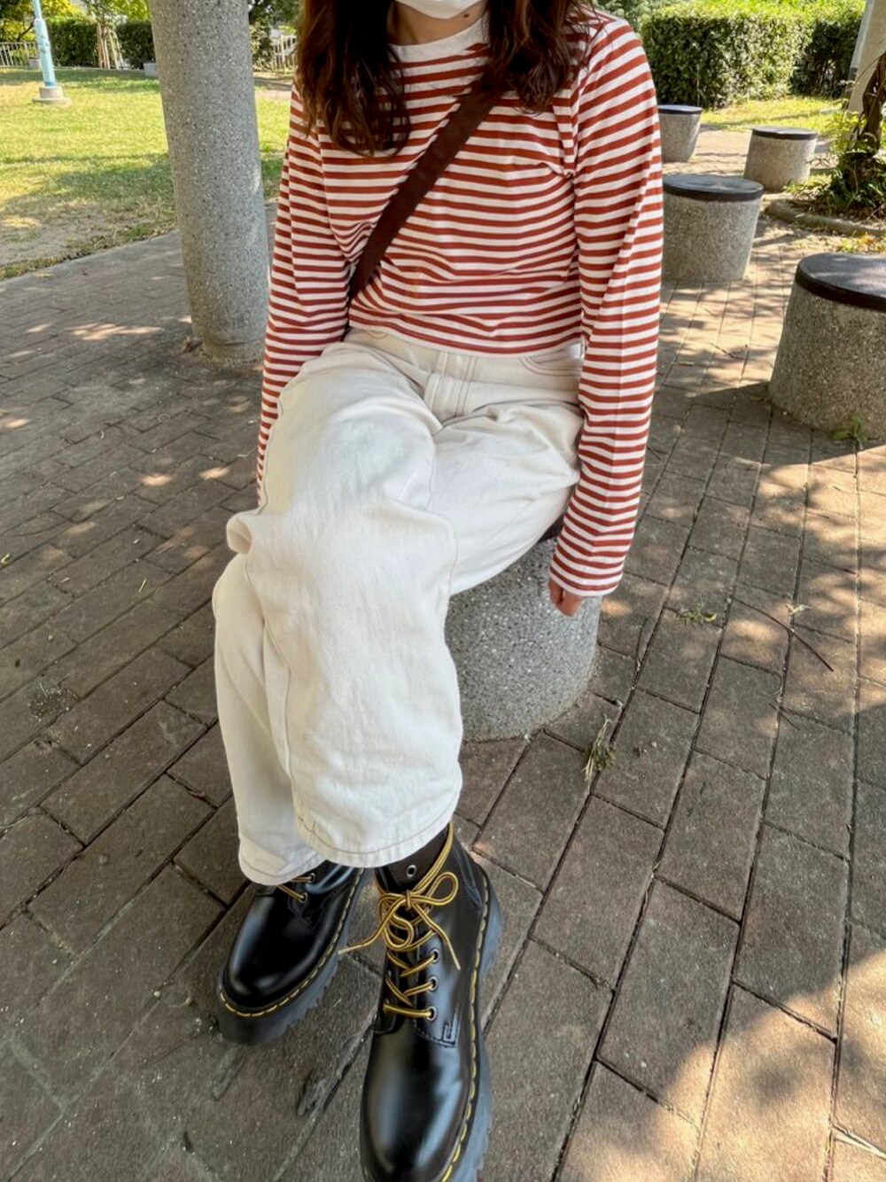 久しぶりのドクターマーチン履いた! ほんでこんなショート丈のトップス初めて着た(^.^) 秋服やっと着れた日に限って晴天ポカポカ