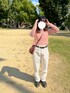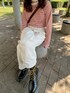 りんごのデニムパンツ「マストアイテム。ゆったりハイウエストワイドストレートチノカラー&無地 オーバーサイズ デニムパンツ」を使ったコーディネート