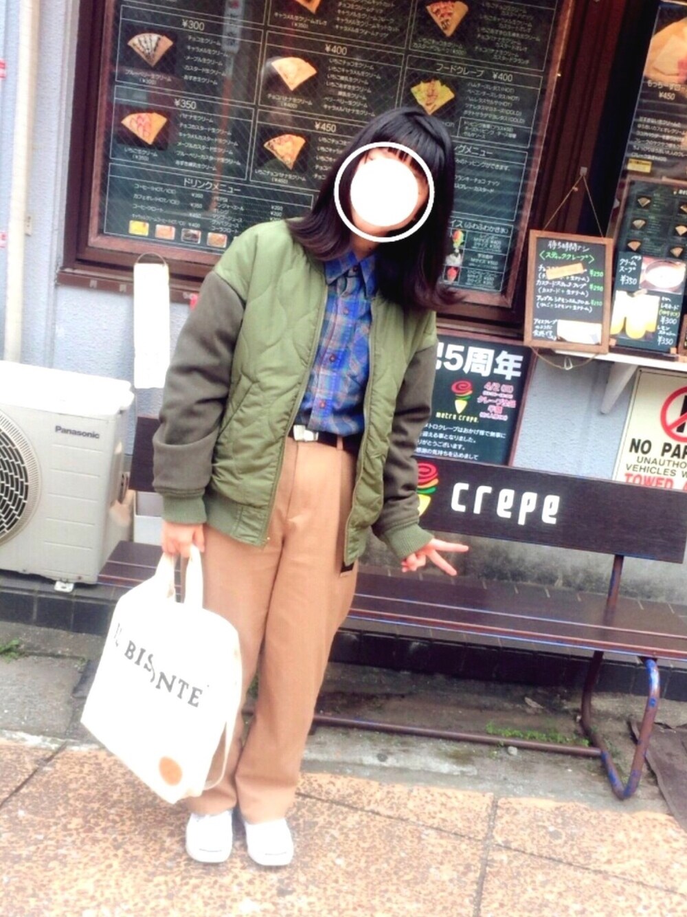 アウター:wcloset シャツ:USED ベルト:WEGO ワイドパンツ:GreenParks トートバッグ:IL BISONTE(ムック本) ソックス:靴下屋 スニーカー:Jack purcell フォロー、いいねありがとうございます😊