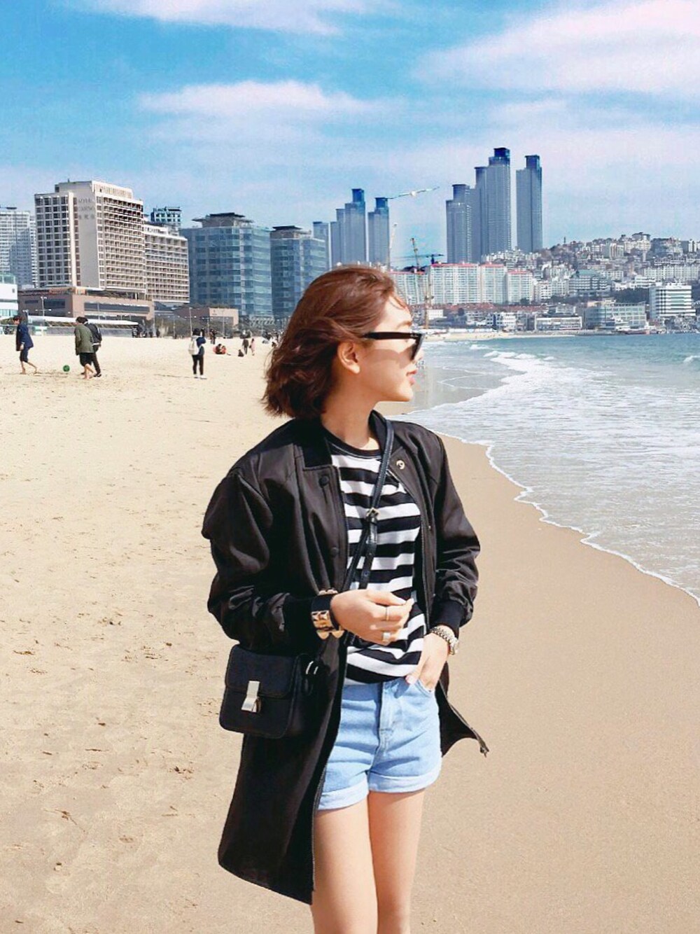ブラック系のサングラスを着用したレディースの春コーディネートの1枚目の写真