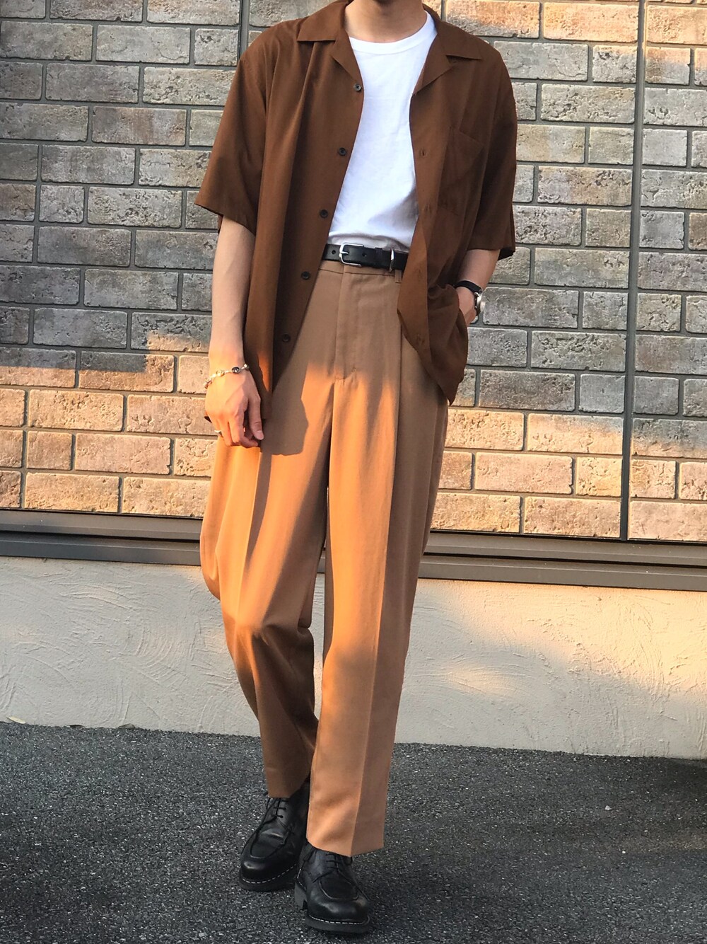 こんばんわ。 いつも見て頂きありがとうございます。 本日はブラウン×ホワイト。 足元は攻めずに安定の黒革靴で。 良ければいいね、フォロー等よろしくお願いします(^^) では。