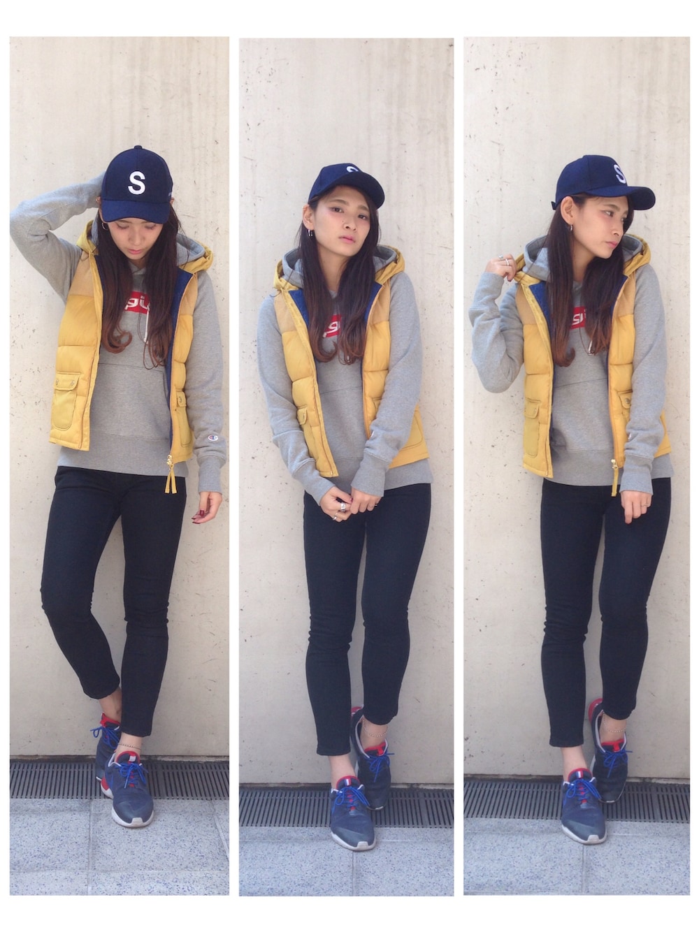 aritanのパーカー「X-girl×Champion VINTAGE SWEAT PULLOVER」を使ったコーディネート