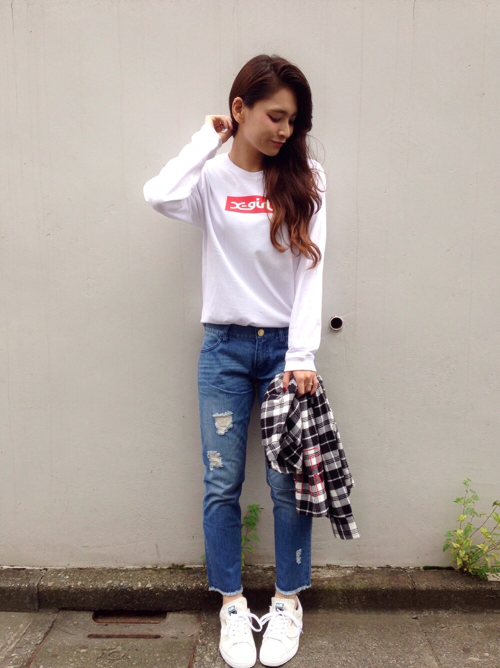 aritanのTシャツ/カットソー「BOX LOGO L/S TEE」を使ったコーディネート
