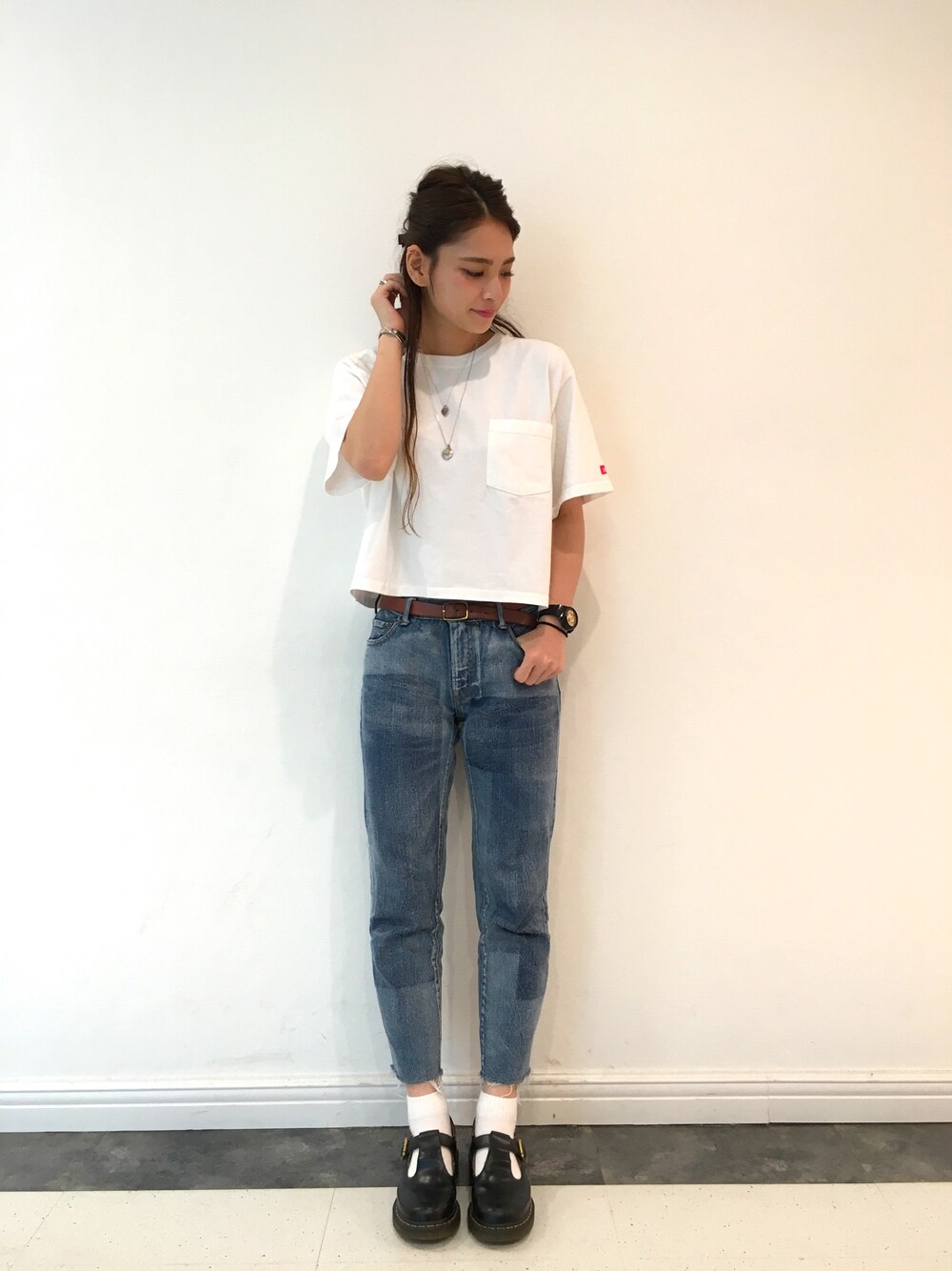 デザインデニムはシンプルにまとめて♡