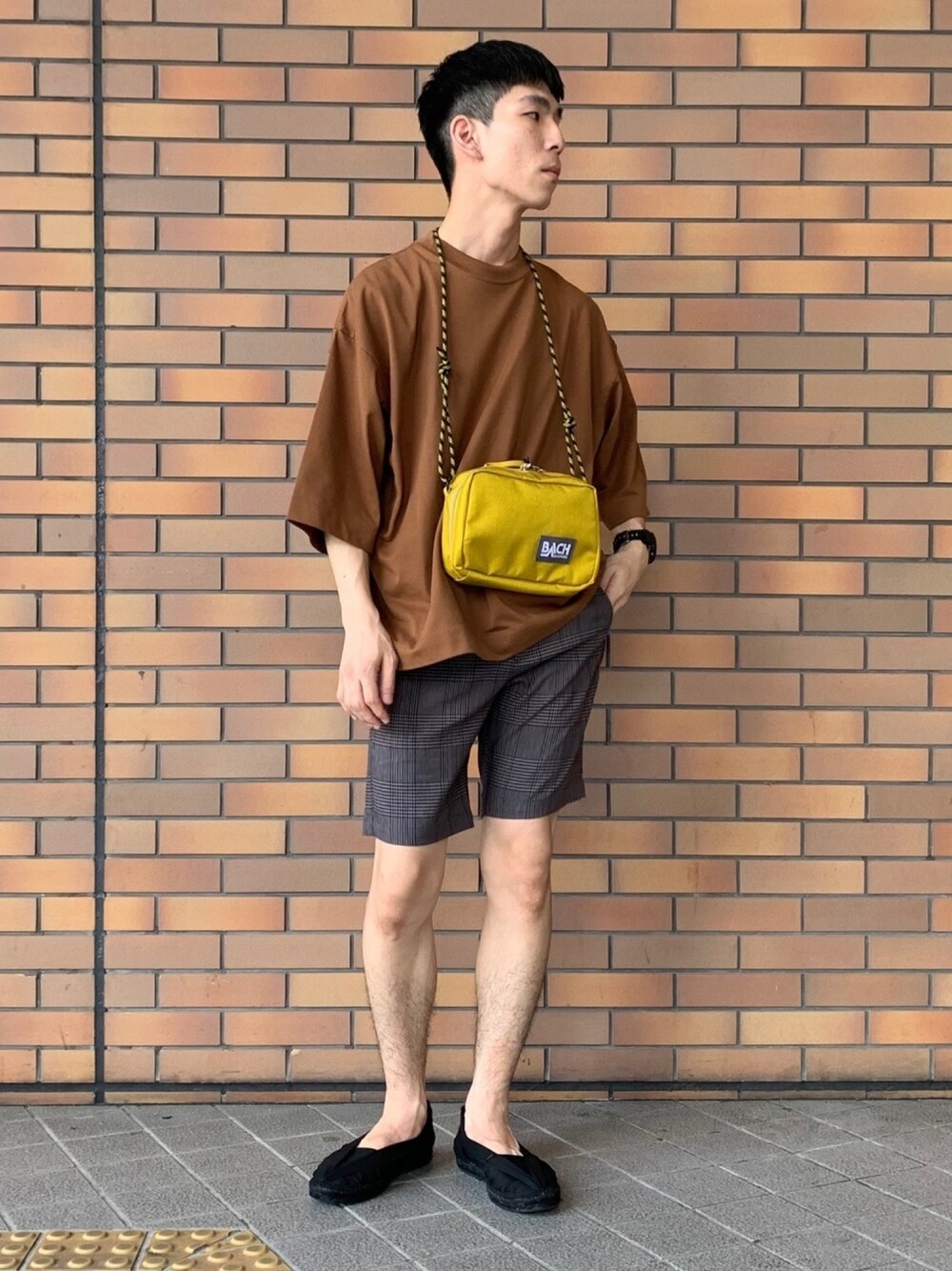 UR TECH ルーズTにチェックショーツ オーバーサイズのトップスには、 膝上のショーツくらいが丁度いいです。 僕のような痩せ型の体型だと、 肘あたりまで袖がくるので、 華奢な体型がカバーできてありがたいです。