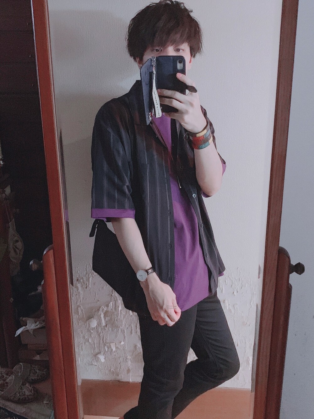 こんにちは! ちょい久しぶりの投稿になります!笑 今回は黒ベース縦ストライプ柄のオープンカラーシャツと紫のビッグTを使ったコーデにしました!どちらもGUのものになります!笑 下は安定の黒スキニーですが、カジュアル系にして靴はシンプルなキレイめ寄りの黒系ブーツを履いても良いかもですね。他にも山ほど選択肢はあるのでその辺は自分で見つけてみてください笑 黒と紫の組み合わせって個人的にめちゃくちゃ好きなんですよね。。 落ち着きがありながらもどこか色気のある色というか、、(語彙力皆無) また近いうちあげようと思います笑 見てくれてありがとうございました😊