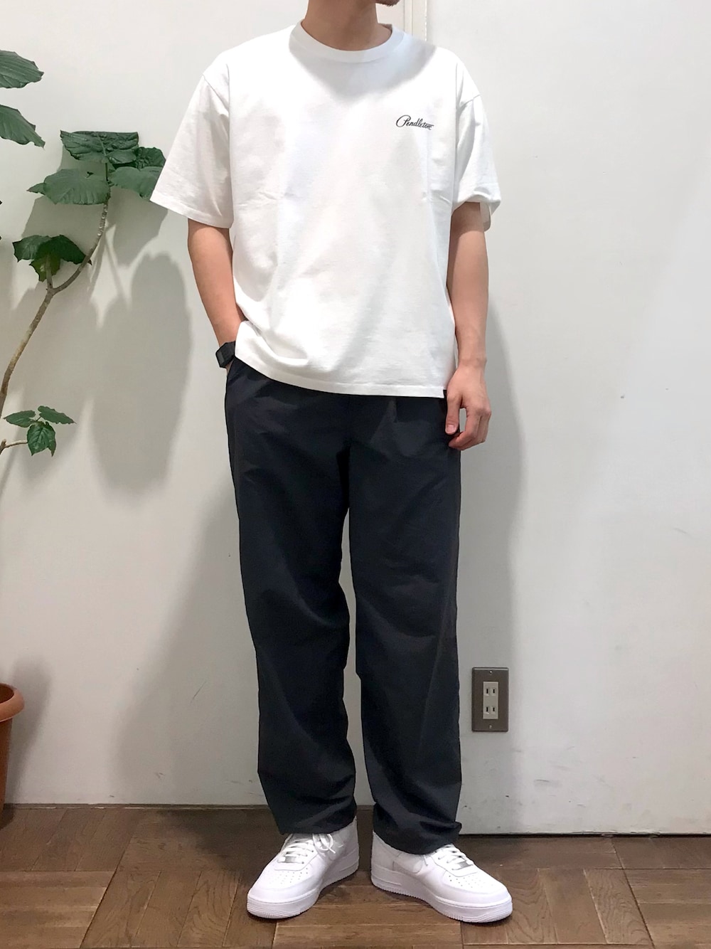 白のTシャツとスニーカーで清潔感プラス爽やかに!