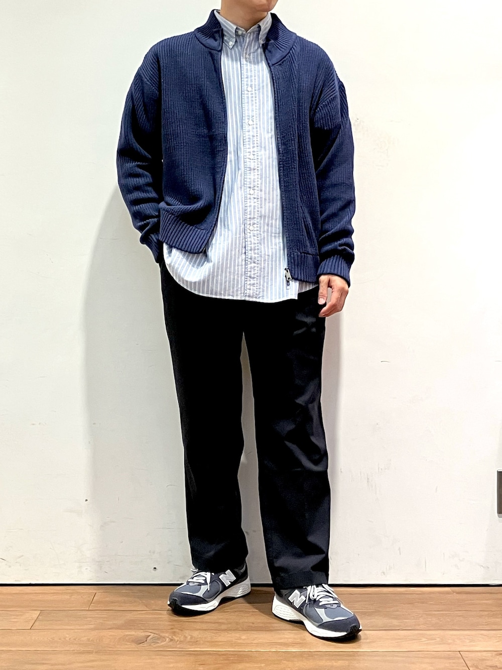 ブルーのアイテムでまとめた秋スタイル。 カーディガンはレイヤードスタイルにオススメな短めの丈感がポイントです!