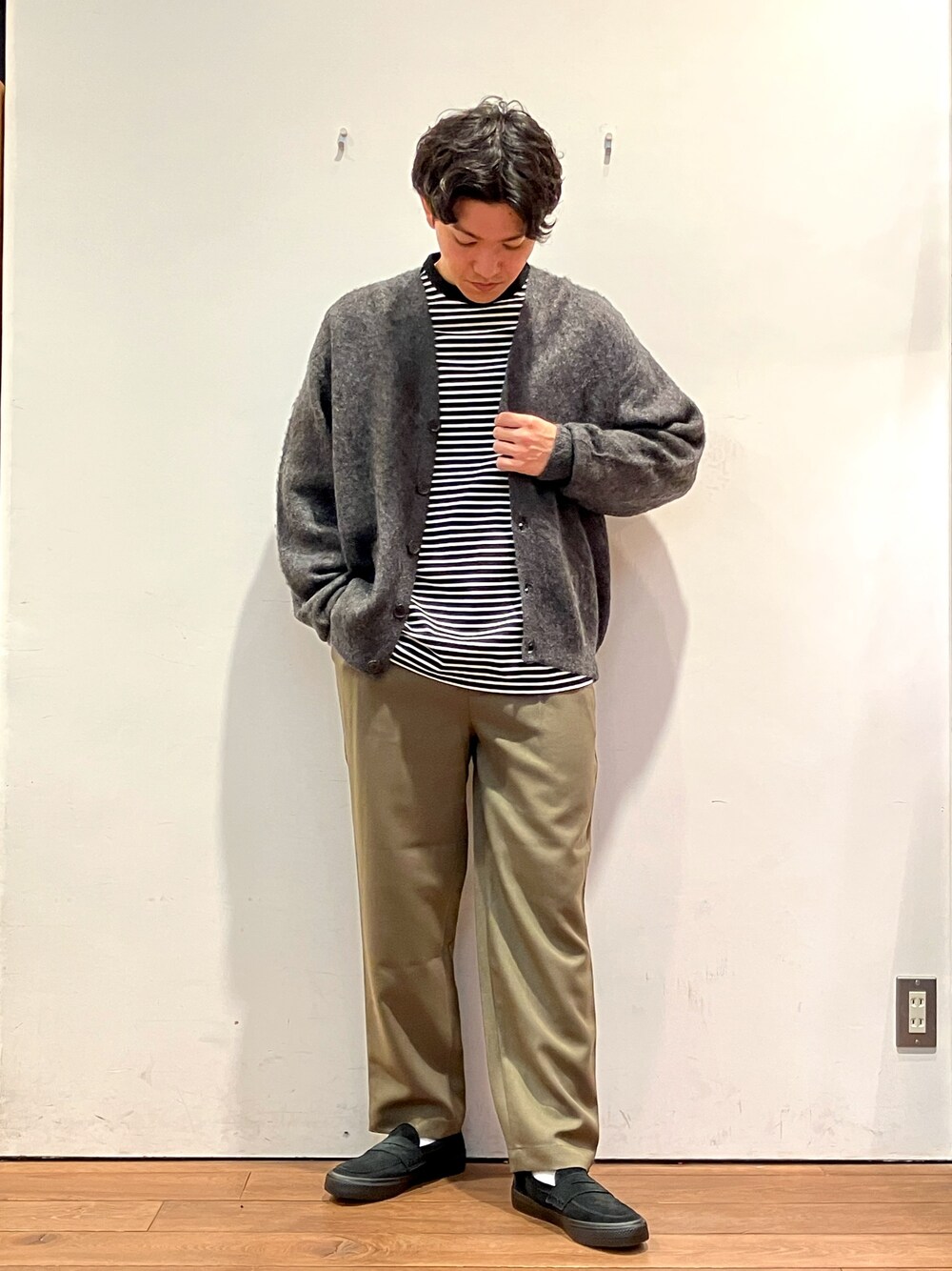 秋冬にオススメなモヘアカーディガンを着用した大人カジュアルスタイル。 カーディガンはゆったりしたシルエットで、トレンドな着こなしにぴったりです! 着丈は長すぎず、レイヤードスタイルにもオススメです!