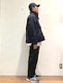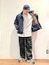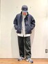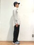 ネイビー×グレー ベーシックな色合わせも、サイズ感をゆったり目のアイテムで合わせ、こなれた雰囲気に。