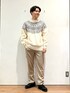 シンプルな色合わせも、インナーに求心柄のニットを合わせて、程よいアクセントに。