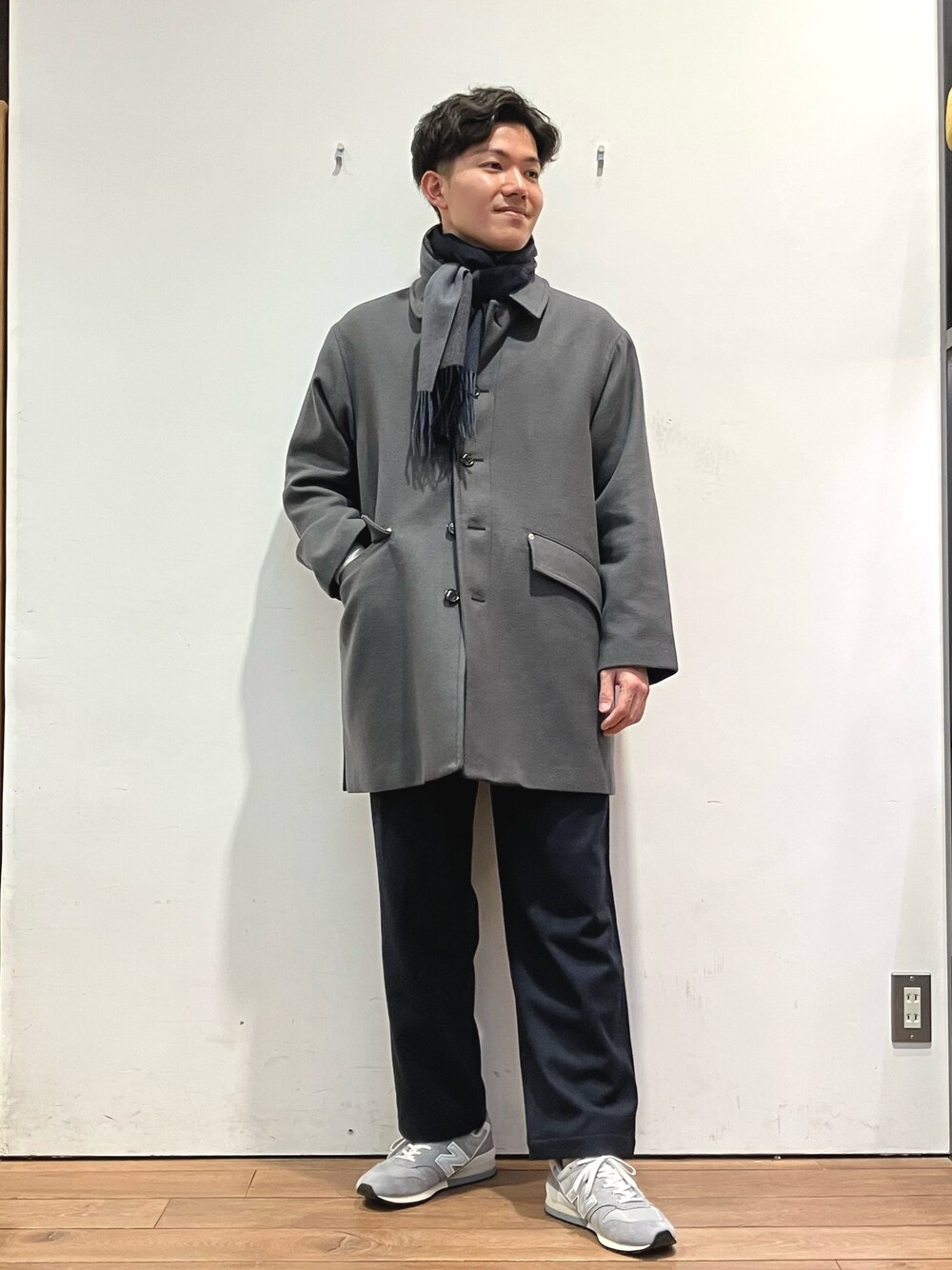 ゆーとのマフラー「カシミヤブレンドパネルマフラー」を使ったコーディネート
