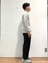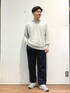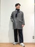 ブルー×グレーで合わせたきれいめスタイリング。 コートは柔らかい生地感、優しい肌触り。 トレンドのミドル丈で身長体格問わず合わせられます!