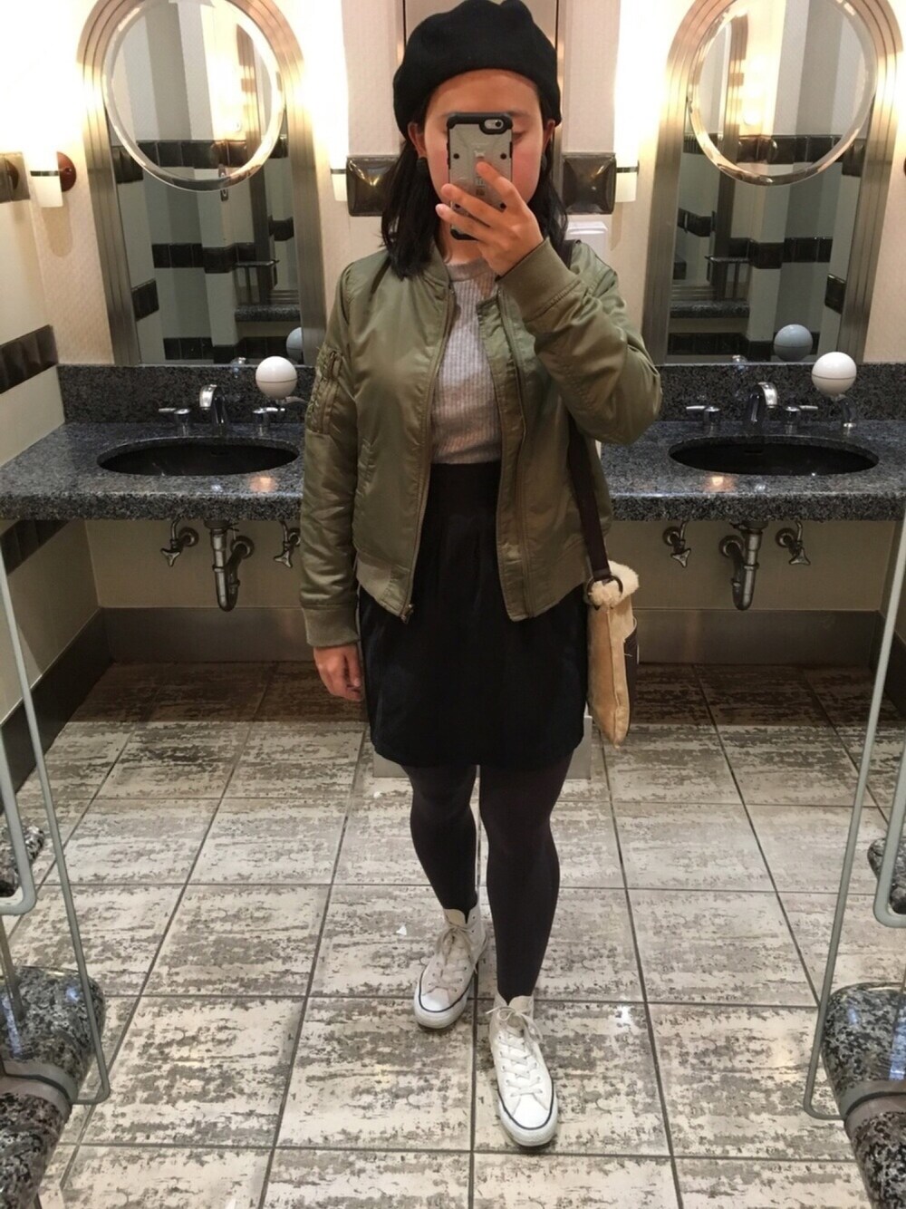今日はいつもより少し暖かかったので、薄手のダウンを久しぶりに着ました。 お母さんとおばあちゃんの付き添いでUSJに来ましたが、やっぱり、スカートは失敗でした💦
