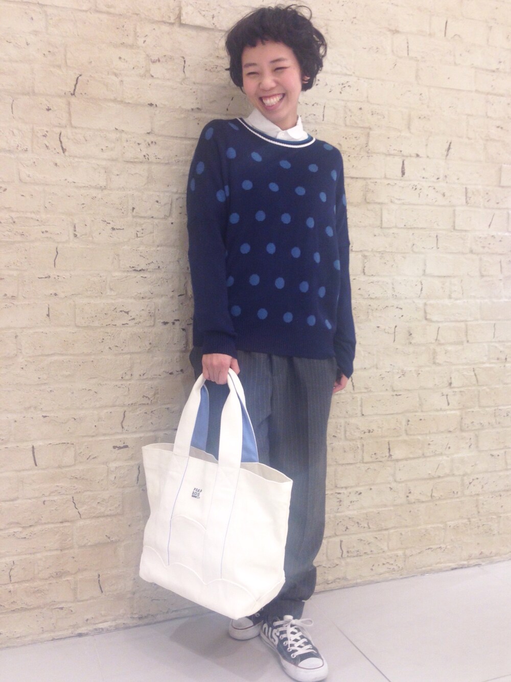 2015年 初・投稿!! 今年もよろしくお願いします☆ 今日の大阪はひさしぶりの雨でした〜 こんな雨の日はリラックスしたスタイルで過ごしたいです( ◜◡‾)(‾◡◝ ) ドットのセーターに白シャツをin☆ わたしが好きなアイテムの合わせ方です パンツはスラックス生地だけど、とってもリラックスして履けるパンツという意味で 《リラック》 という名前が付いたとっても履きやすいパンツです!!笑 ダジャレに座布団、3枚(゜0゜)♡♡ 是非、店頭でお試し下さいっ