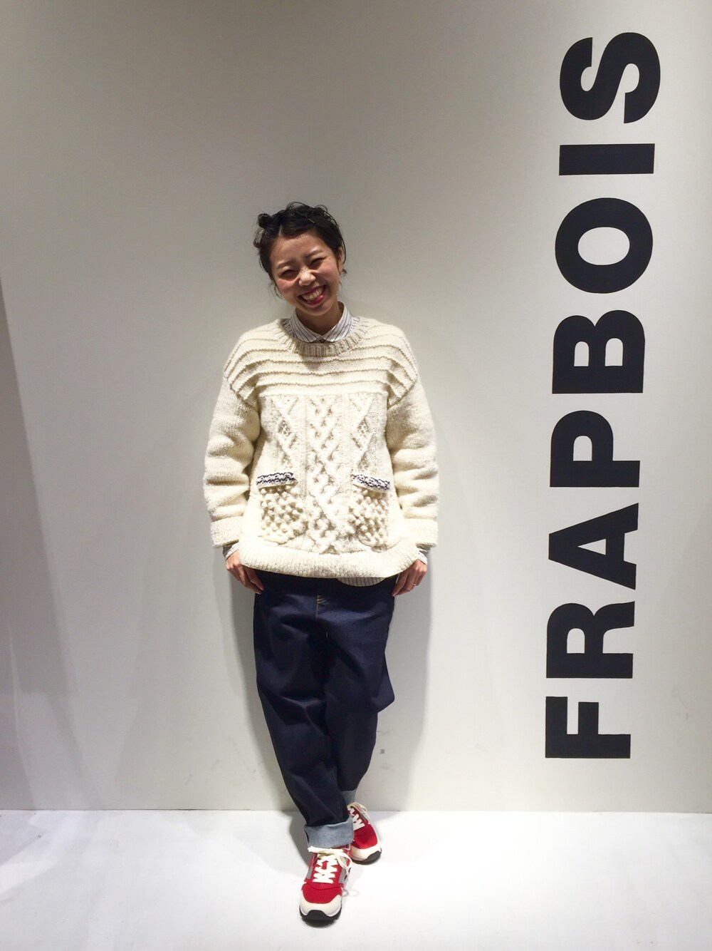 このニットはネパールの人たちが作ってくれたハンドメイドのニット\(^o^)/ 独特の風合いとなんだかほっとするあったかい雰囲気はハンドメイドならでは! このぐらいボリュームのあるニットは少しダボッとしたパンツでバランス良く着こなしたいです! お気に入りのニットとデニムで至福の時〜♪